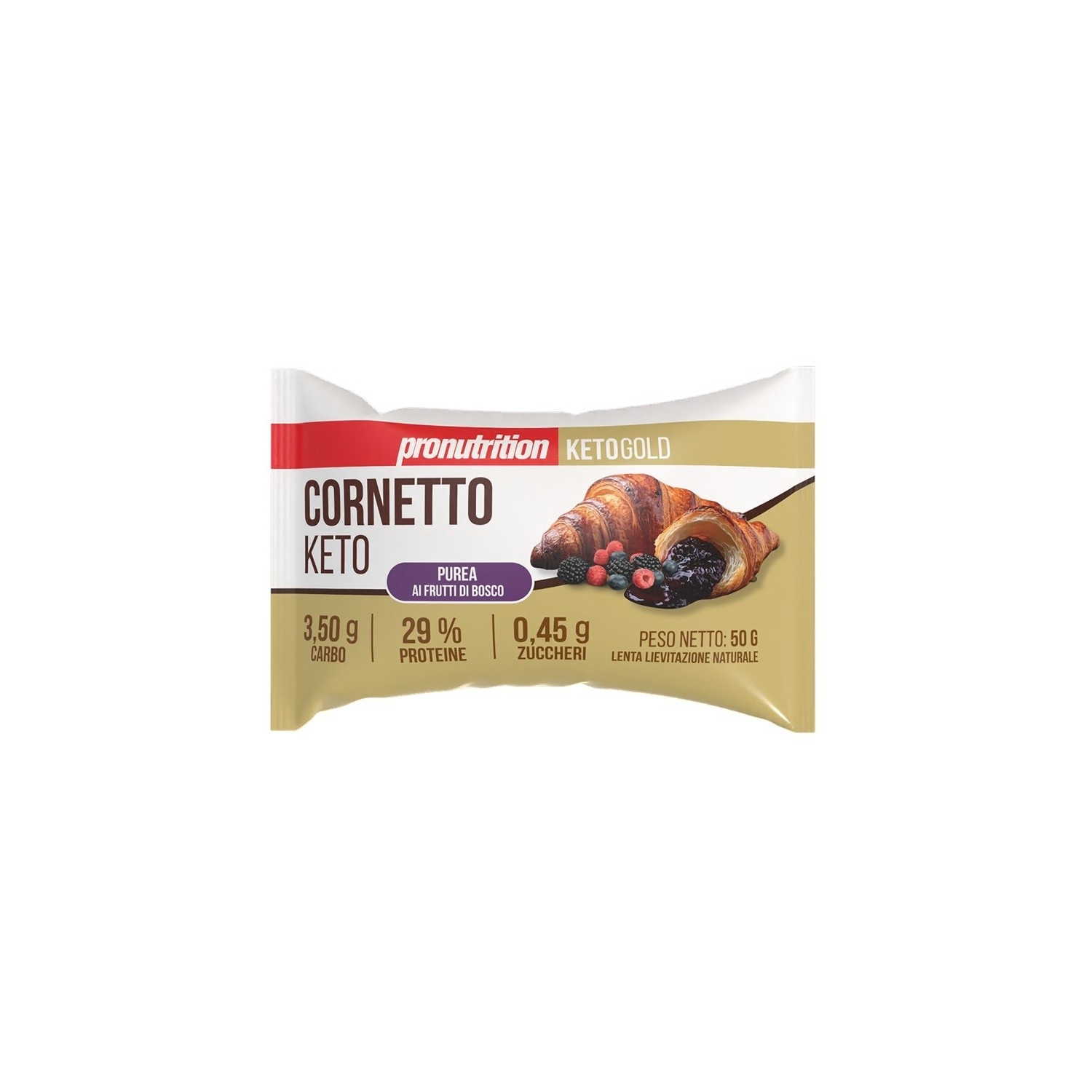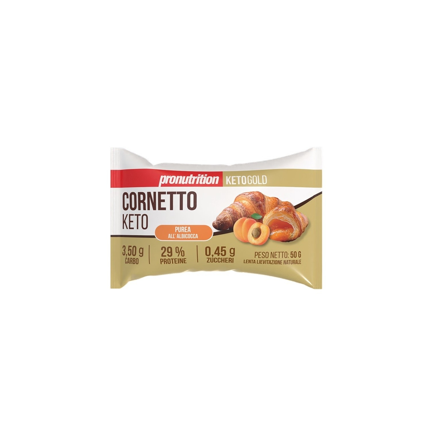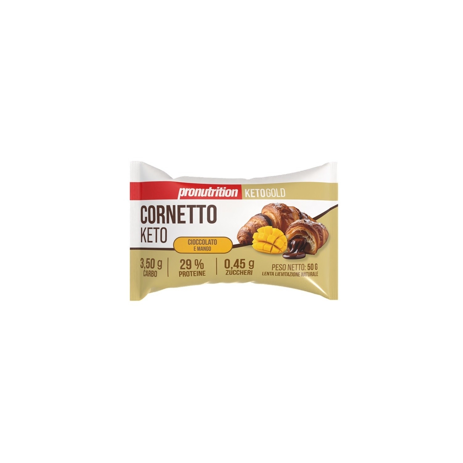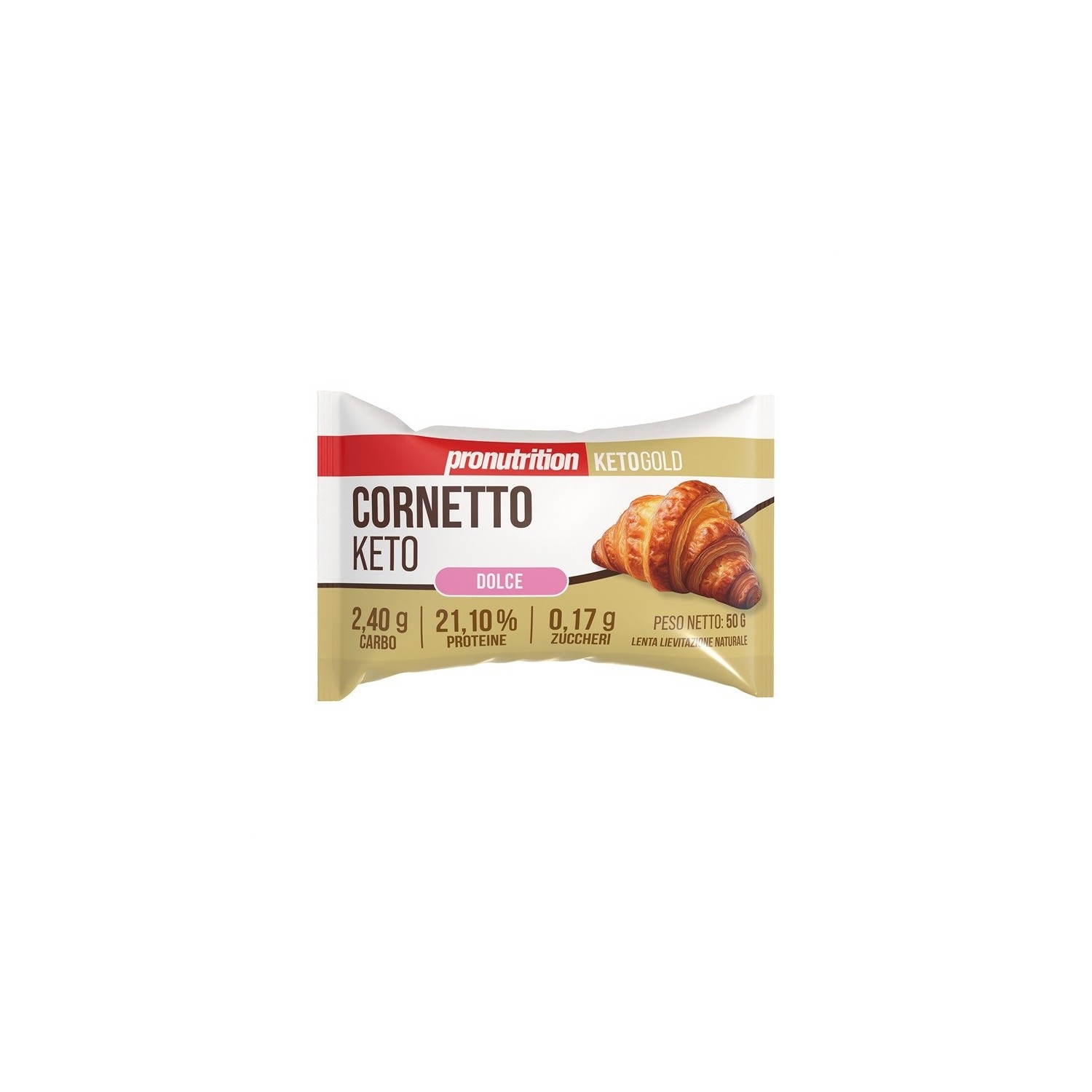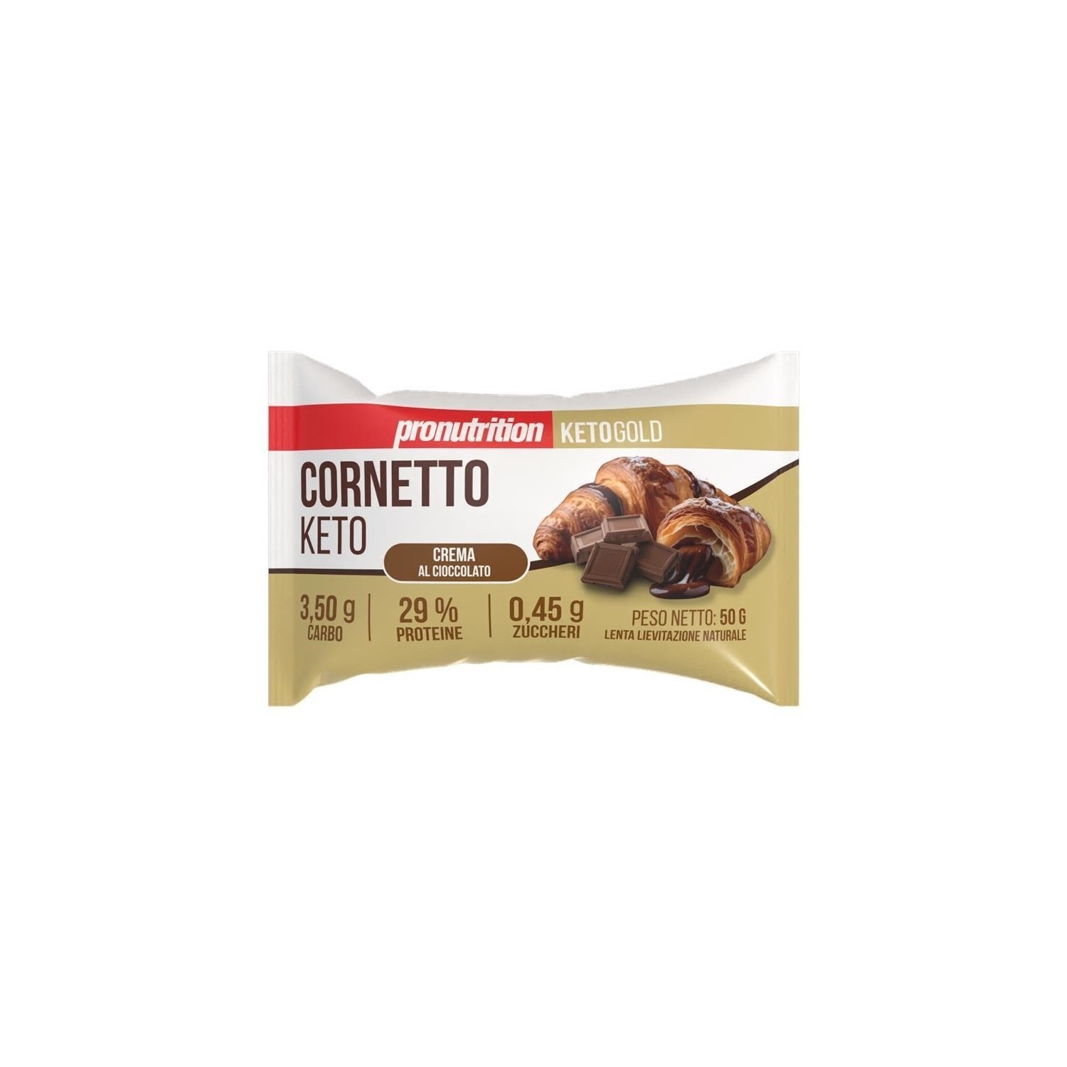 Delizioso cornetto chetogenico ripieno. I laboratori pasticceri di Pronutrition hanno compiuto un vero e proprio miracolo culinario realizzando un cornetto con un gusto ed una fragranza tale e quale al cornetto del bar, ma comunque in perfetto stile cheto a bassissimo tenore di carboidrati e con un ripieno avvolgente e gustoso. La qualità delle materie prime, le nuove tecnologie, ma soprattutto l'esclusività della ricetta chetogenica rende il cornetto Pronutrition un vero e proprio piacere per il palato senza perdere di vista la tabella nutrizionale dove gli zuccheri e i carboidrati sono ai minimi termini. Una ricetta semplicemente perfetta. Il cornetto Pronutrition ha una lievitazione naturale di ben 24 ore a temperatura ambiente.
