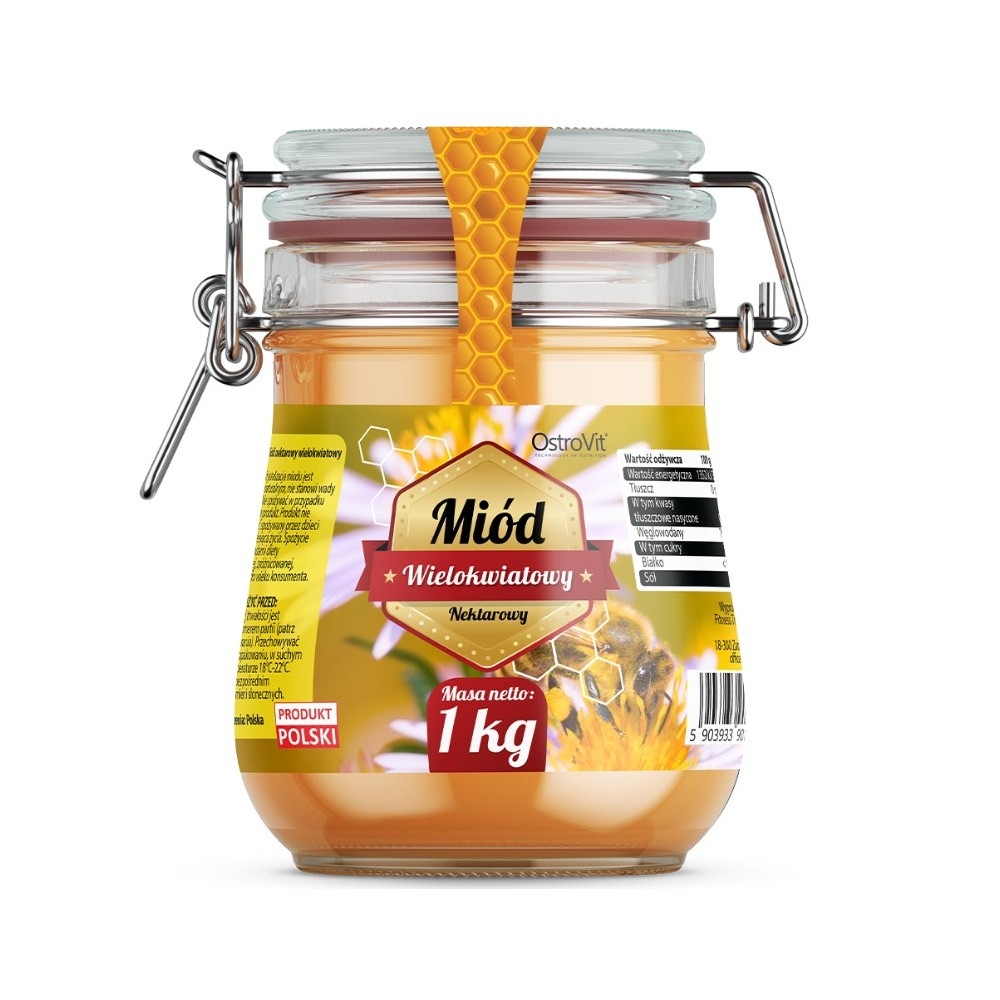 Il miele millefiori si ottiene naturalmente in primavera, estate e autunno e il suo sapore unico deriva dalla speciale combinazione di polline. Ogni raccolto di questo tipo di miele apporta proporzioni diverse di fattori chimici che influenzano le sue proprietà salutari. È la loro combinazione e diversità che lo rendono il miele più universale che unisce i vantaggi di tutti gli altri. È adatto a vegani e vegetariani. Può essere utilizzato come ingrediente di pietanze, dessert o dolcificante per bevande e dolci. Il colore del miele millefiori OstroVit varia dal crema brillante al marrone arancio e, una volta cristallizzato, dal giallo chiaro al marrone scuro. Il miele si presenta come un liquido denso e una volta cristallizzato come un prodotto di media gradazione. La cristallizzazione richiede diversi mesi dopo l'apertura, quindi questo miele rimane liquido per lungo tempo.