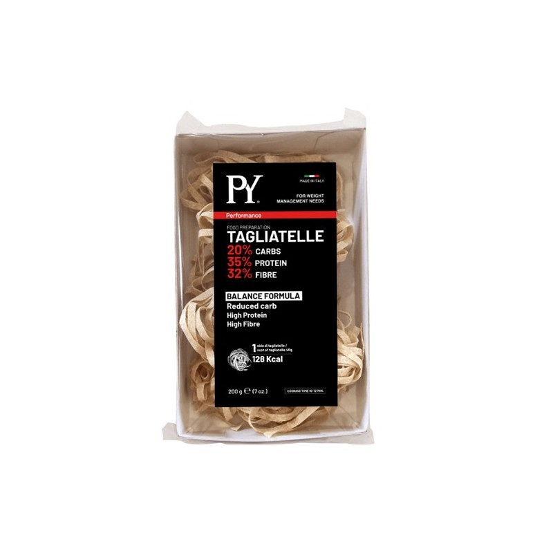 PastaYoung ha creato per voi uno “specialty food”, una tagliatella proteica perfetta per la dieta e la gestione del peso. È un preparato alimentare equilibrato con solo il 20% di carboidrati (72% in meno di una pasta tradizionale) e con un mix perfetto tra proteine e fibre. La miscela fatta con semola di grano duro, fibra di grano e proteine dall’alto valore biologico permette di avere una pasta ruvida che cuoce in 10 minuti e trattiene il condimento in modo straordinario. Godetevi il piacere di un piatto di pasta senza temere i valori della tabella nutrizionale.