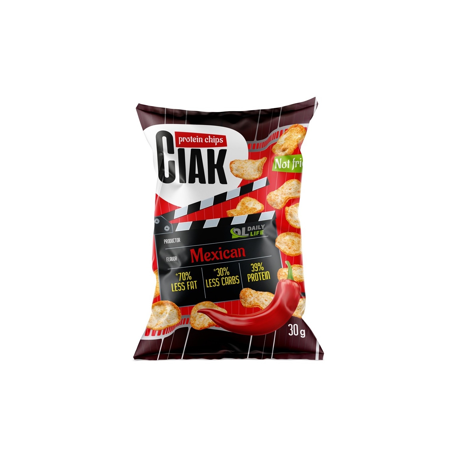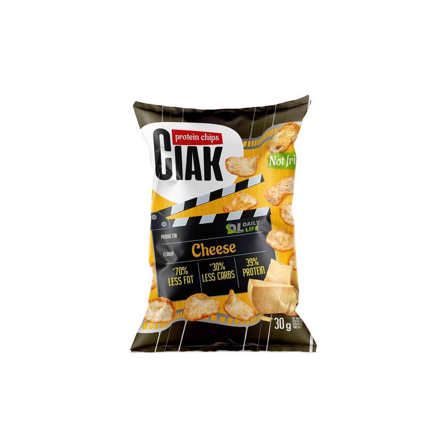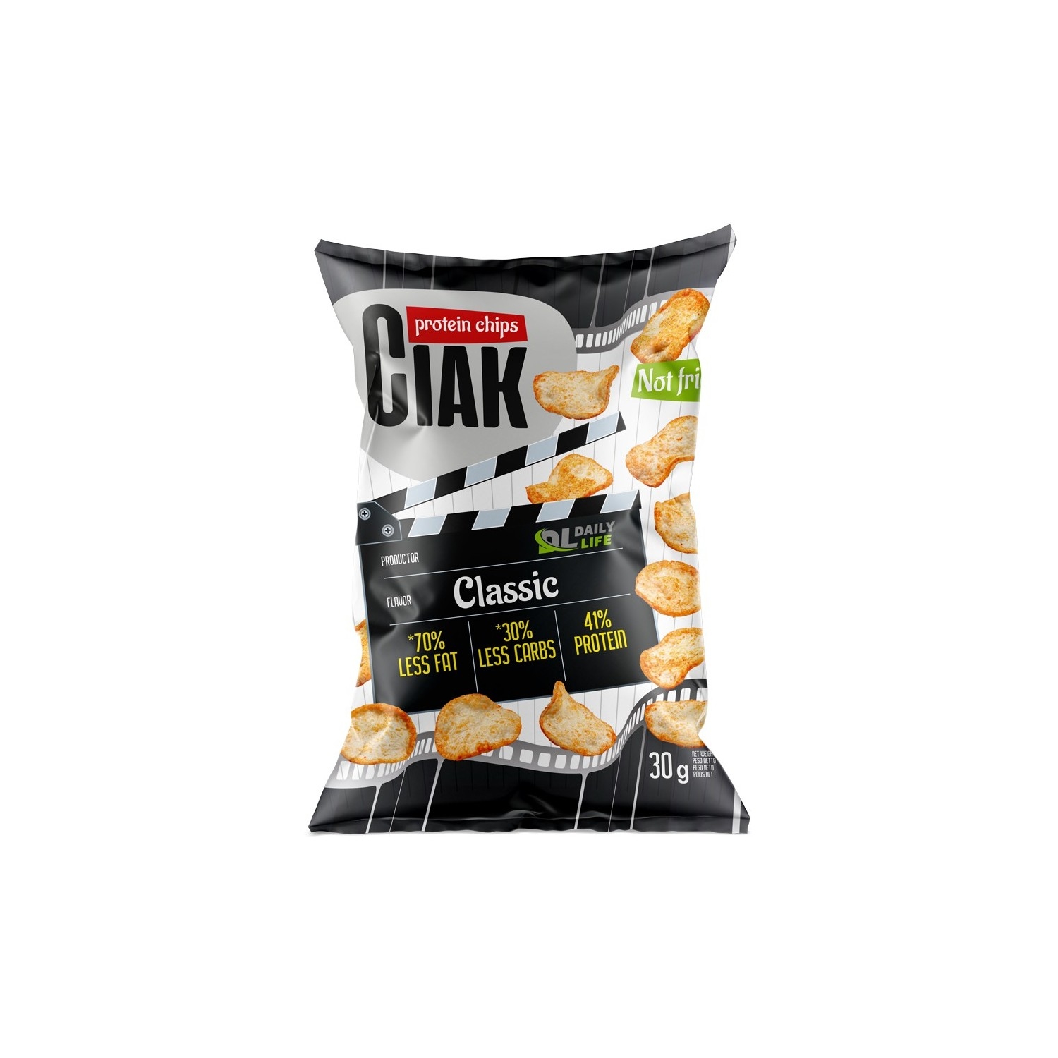 Le Ciak Protein Chips sono patatine croccanti e deliziose, ma con un segreto: hanno un alto contenuto proteico fino al 41%* di proteine derivate dai piselli, e, non essendo fritte, contengono circa il 70% in meno di grassi ed il 30% di carboidrati in meno **rispetto alla media degli snack di patatine fritte più vendute. Questo le rende un’ottima opzione per chi cerca uno snack gustoso ma anche nutriente, adatto a chi segue una dieta proteica ed a chi vuole mantenere uno stile di vita sano.