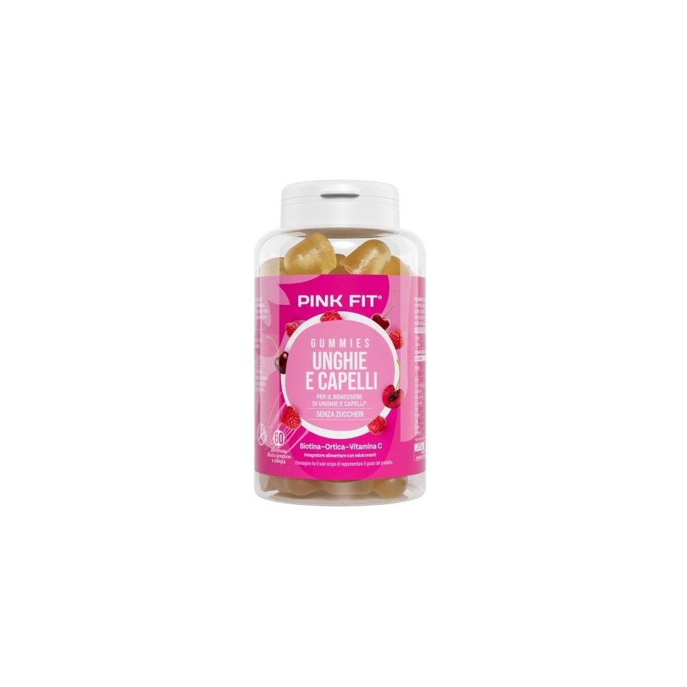 Pink Fit Gummies Unghie e Capelli sono deliziose caramelle gommose, senza zuccheri, composte da Biotina, Ortica, e Vitamina C che favoriscono il benessere di unghie e capelli.
