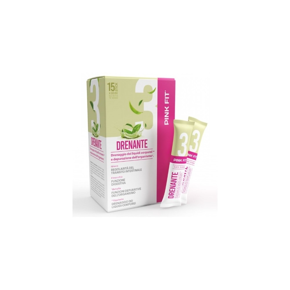 Ingredienti: Pink Fit Drenante: Acqua, stabilizzante: sorbitolo; aromi, Betulla (Betula pendula Roth) foglie e.s. tit. al 0,3% in flavonoidi totali, Equiseto (Equisetum arvense L.) erba e.s. tit. al 1% in silice, Ibisco (Hibiscus sabdariffa L.) fiori e.s. tit. al 20% in acidi totali, Pilosella (Hieracium pilosella L.) erba e.s. tit. 1% in vitexina, Finocchio (Foeniculum vulgare Mill.) frutti e.s. tit. al 0,5% in olio essenziale, acidificante: acido citrico; addensantibetulsa: gomma di acacia, gomma di xanthano; conservanti: sodio benzoato, potassio sorbato; edulcorante: sucralosio; gluconato di rame, biotina.