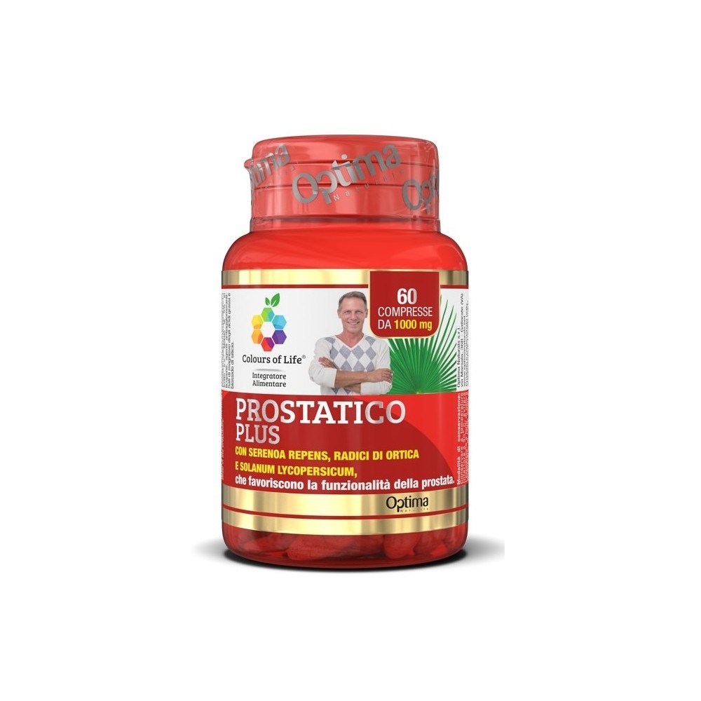 Integratore alimentare in compresse a base di estratto di Serenoa repens frutti titolato al 45% in acidi grassi, ortica radice estratto secco titolato allo 0,4% in betasitosteroli e Solanum lycopersicum (pomodoro) frutti estratto secco titolato al 5% in licopene. Presente anche polvere micronizzata da foglie di ortica, per il benessere e il drenaggio delle vie urinarie. Con Serenoa repens, radici di ortica e Solanum lycopersicum, che favoriscono la funzionalità della prostata.