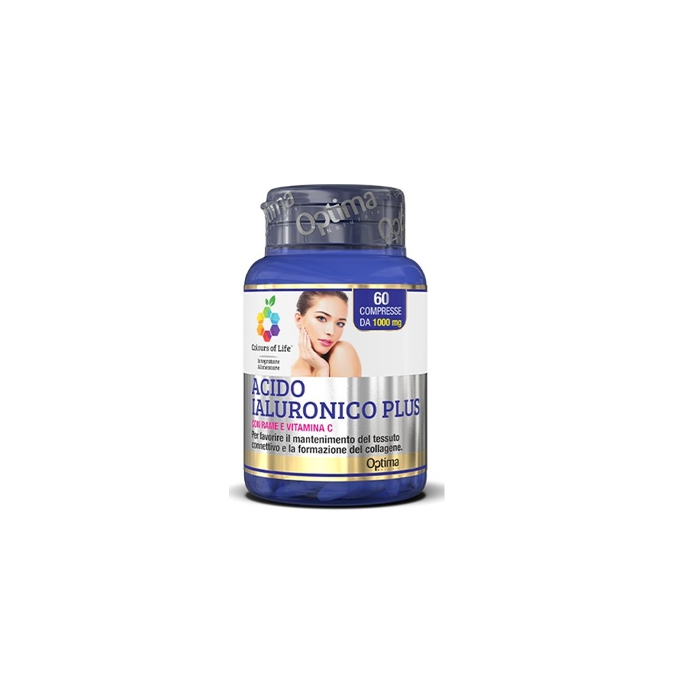 Integratore alimentare a base di Acido Ialuronico, con Rame e Vitamina C. Per favorire il mantenimento del tessuto connettivo e la formazione del collagene.