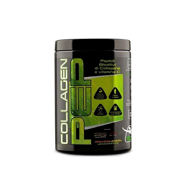Collagen Pep (Peptidi Bioattivi di Collagene) è un integratore alimentare a base dell'innovativo brevetto Bodybalance® che, tramite un processo di ultrafiltrazione e idrolizzazione, consente l'ottenimento di peptidi bioattivi altamente puri da collagene. Il prodotto è arricchito dalla presenza del brevetto Belinal® un estratto secco titolato in polifenoli derivante dall'abete bianco. Collagen Pep (Peptidi Bioattivi di Collagene) contiene Vitamina C, la quale favorisce la normale formazione del collagene per la corretta funzione delle cartilagini e delle ossa. Contribuisce al metabolismo energetico riducendo la stanchezza e l'affaticamento collaborando alla protezione delle cellule dallo stress ossidativo. Il Collagene viene anche definito "la proteina del corpo" poiche rappresenta il 30% delle proteine presenti nell'organismo. E' una proteina con una struttura primaria nel tessuto connettivo abbondante nei vasi sanguigni, nei dischi intervertebrali, nella barriera emato-encefalica e nella parete intestinale.