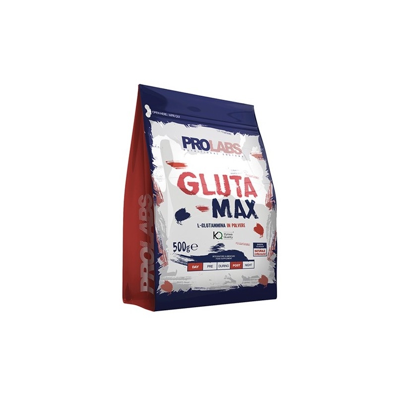 GLUTA MAX è un integratore alimentare di L-Glutammina (Kyowa Quality®) in polvere, indicato per adulti. Apporta 5000 mg di L-Glutammina per singola porzione. Il prodotto è particolarmente indicato nella fase post workout per gli sportivi, oppure durante la giornata. Non contiene ingredienti di origine animale.