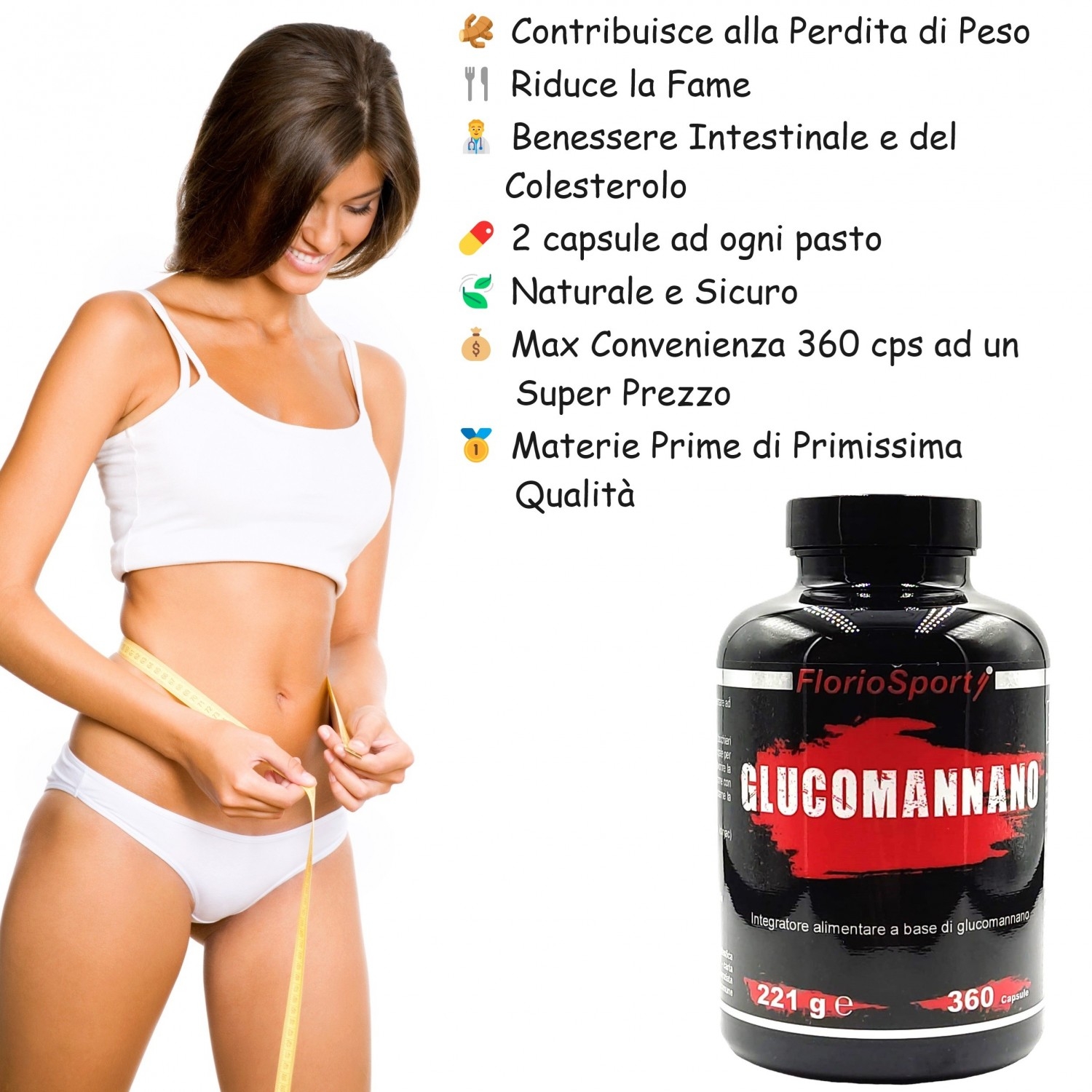 GLUCOMANNANO FORTE DIMAGRANTE: FlorioSport Glucomannano è un integratore di fibra alimentare ad alta solubilità. Nel contesto di una dieta ipocalorica, il Glucomannano contribuisce alla perdita di peso, se, assunto nella dose di 3 g al giorno ( in tre dosi da 1 grammo ciascuno) con 1-2 bicchieri di acqua prima dei pasti.