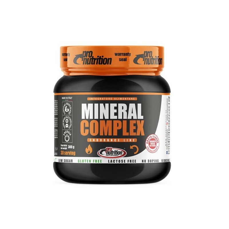 Integratore alimentare di sali minerali a ridotto contenuto di zuccheri e carboidrati. Si consiglia l'assunzione del prodotto durante e dopo un intenso sforzo fisico. La sua completa formulazione favorisce la normale contrazione muscolare, la protezione delle cellule dallo stress ossidativo e l’ equilibrio acido-base dell’organismo. Mineral Complex contribuisce anche all’equilibrio elettrolitico, alla riduzione della stanchezza, dell’affaticamento e della normale funzione del sistema immunitario