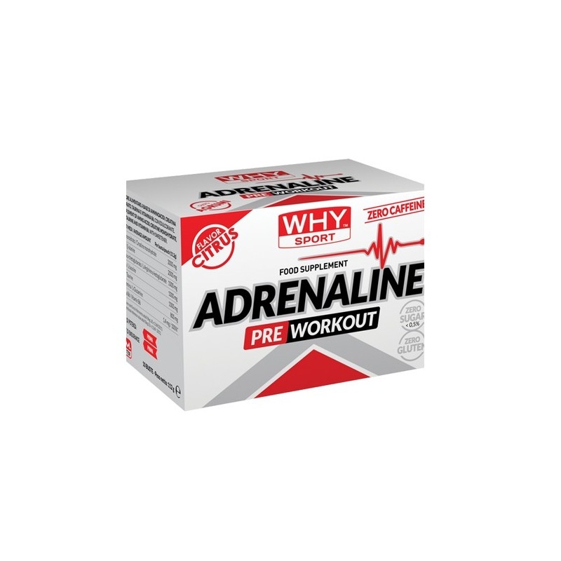 WHYsport Adrenaline Preworkout è un integratore alimentare a base di amminoacidi, creatina, taurina e vitamina B6, con edulcorante. Privo di zuccheri e glutineIl prodotto può dare naturalmente origine ad un leggero formicolio dovuto alla sinergia degli ingredienti.