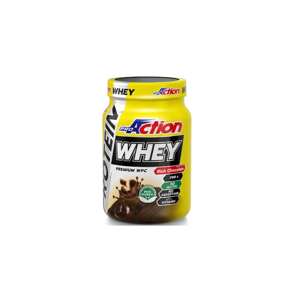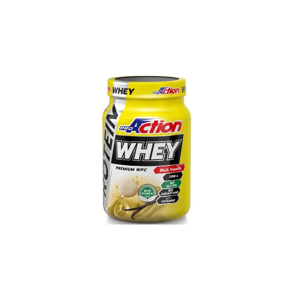 Whey Protein è un integratore alimentare in polvere solubile, con edulcorante, a base di sieroproteine del latte istantaneizzate e concentrate con aggiunta di vitamine.