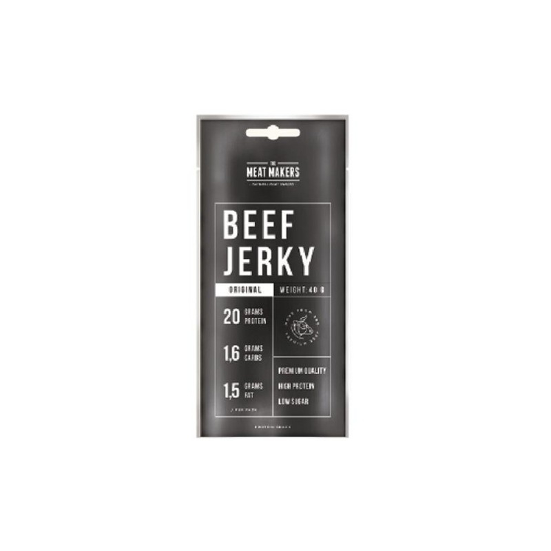 Snack proteico a base di carne di manzo di prima qualità. Ogni busta da 40 g apporta più del 50% di proteine ad alto valore biologico ed una ridottissima quantità di grassi e carboidrati. La carne utilizzata è di origine europea e viene utilizzata solo quella che supera la selezione di qualità. Essa viene degrassata e lasciata essiccare con una lavorazione totalmente manuale. Gli aromi utilizzati sono totalmente naturali (sale, pepe, aglio e spezie) ed il prodotto si presenta a strisce per poterla gustare comodamente in ogni momento della giornata.