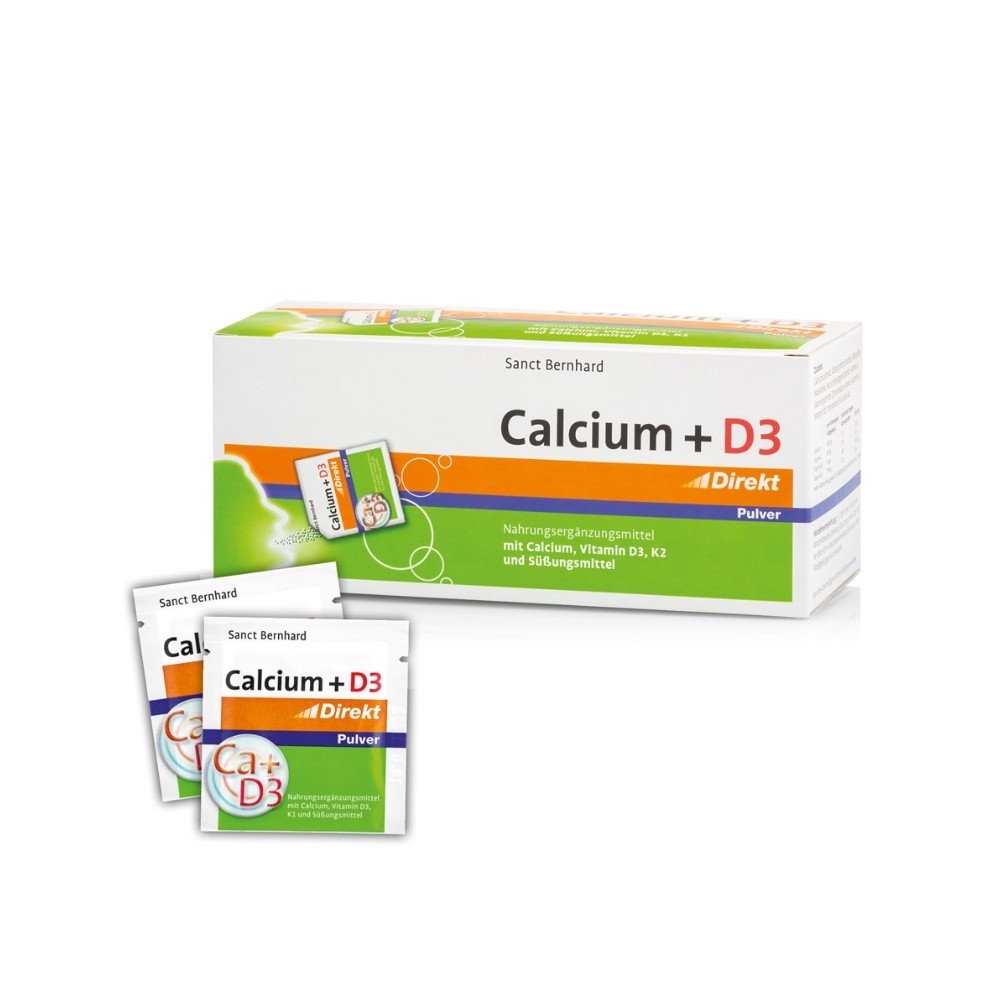 Integratore alimentare con Calcio, Vitamina D3, K2 ed edulcoranti. La polvere diretta Calcium + D3 può essere assunta senza liquidi e si scioglie direttamente in bocca. Gusto gradevole e fruttato. Pratico, veloce e facile, quindi ideale per gli spostamenti.
