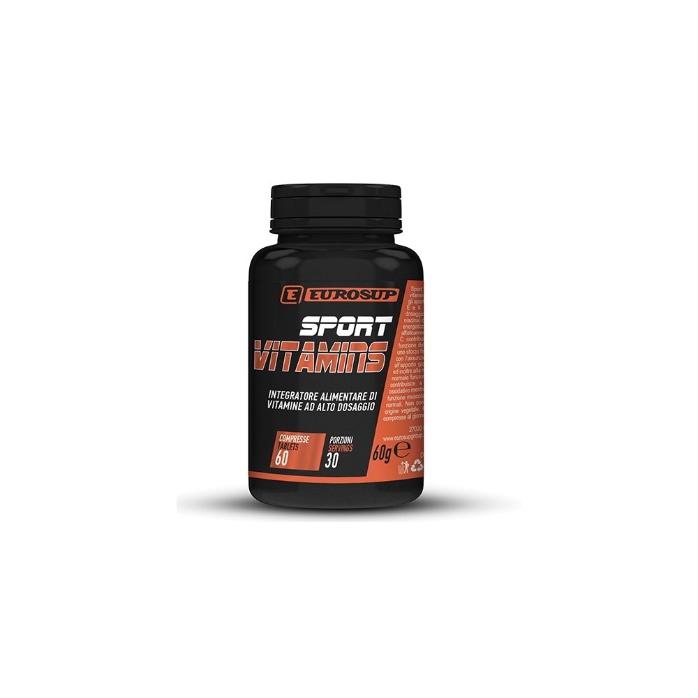 Sport Vitamins è un integratore alimentare di vitamine realizzato da Eurosup. è indicato per gli sportivi ed apporta tutte le vitamine (A,C, D, E e K oltre a quelle del gruppo B) in alto dosaggio. Le vitamine sono micronutrienti essenziali che l'organismo non è in grado di sintetizzare in quantità sufficienteNon contiene ingredienti di origine animale. Con vitamina D3 Vegana Vitashine.