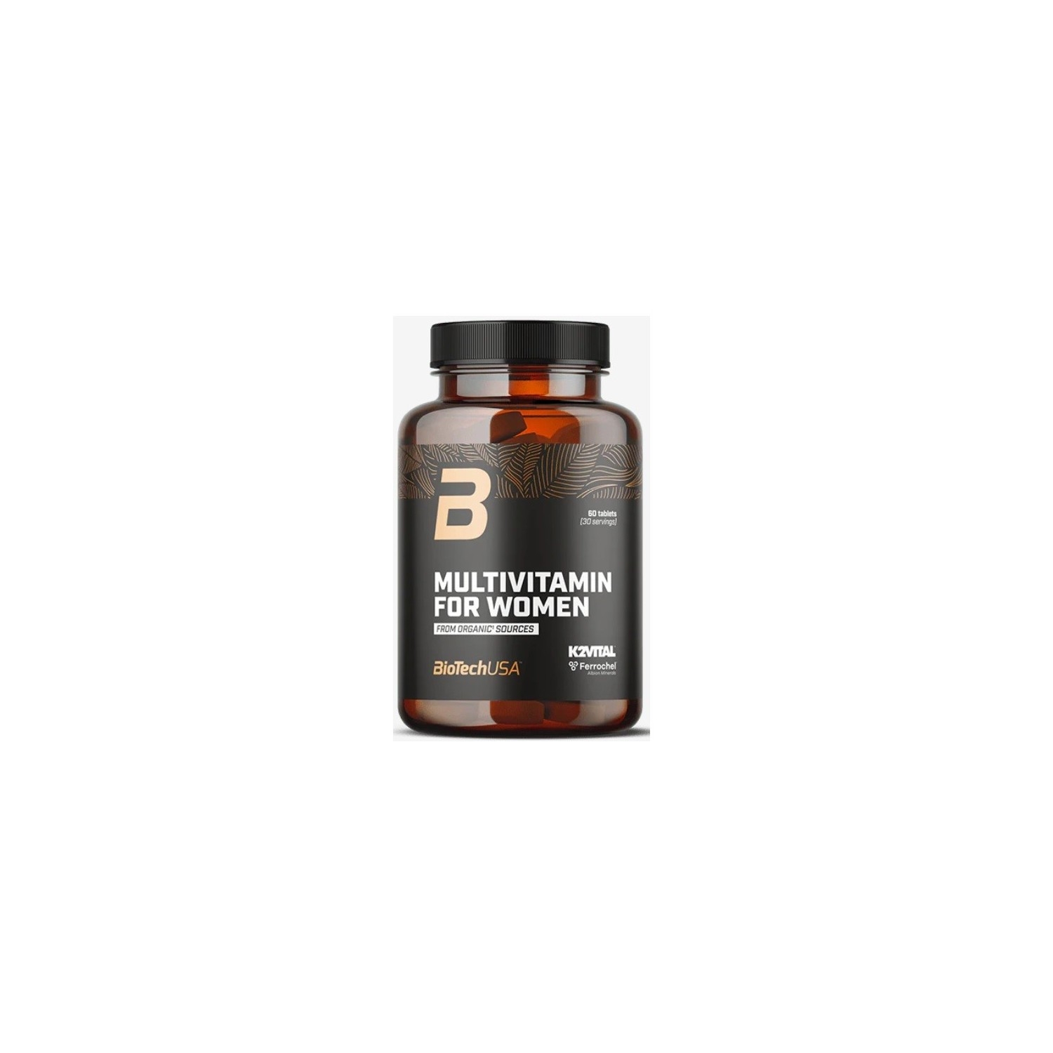 Multivitaminico per donne, che supporta con vitamine, minerali organici, formule brevettate ed estratti vegetali. Ingredienti selezionati con vitamine e minerali organici, formule brevettate K2Vital e Ferrochel, estratti vegetali per il benessere quotidiano. Formula senza iodio.