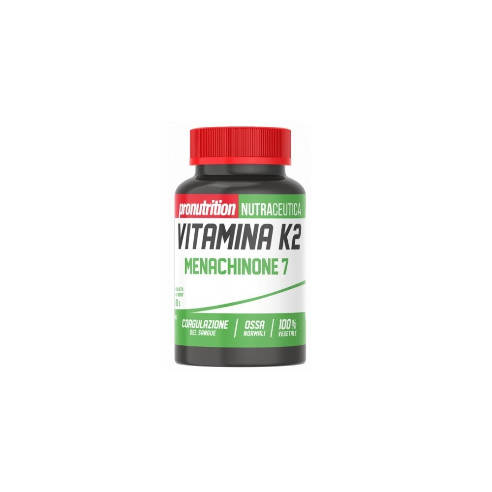Integratore alimentare di vitamina K2. La vitamina K2 contribuisce al mantenimento di ossa normali e alla normale coagulazione del sangue. Il prodotto non contiene naturalmente lattosio.