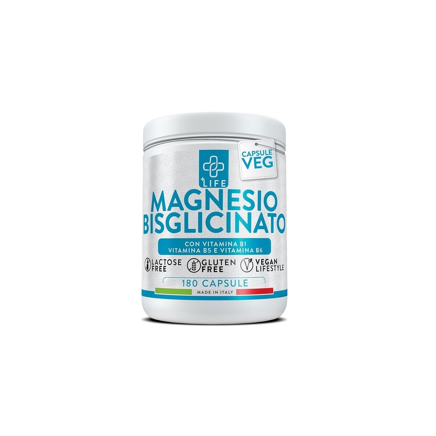Magnesio bisglicinato PiùLife è un integratore facilmente assorbibile che supporta il rilassamento muscolare, contrasta lo stress, favorisce il benessere delle ossa e supporta la regolarità intestinale. È un compagno versatile per il benessere quotidiano, offrendo benefici che si estendono dall'interno al tuo stato mentale e fisico L'aggiunta delle vitamine B1, B6 e B5 al glicinato di magnesio integratore amplifica i suoi benefici. La vitamina B1 supporta il metabolismo energetico e nervoso, mentre la B6 favorisce e regola l'umore. La B5 è coinvolta nella produzione di energia. Insieme al magnesio, queste vitamine lavorano sinergicamente per promuovere il rilassamento muscolare e contrastare lo stress
