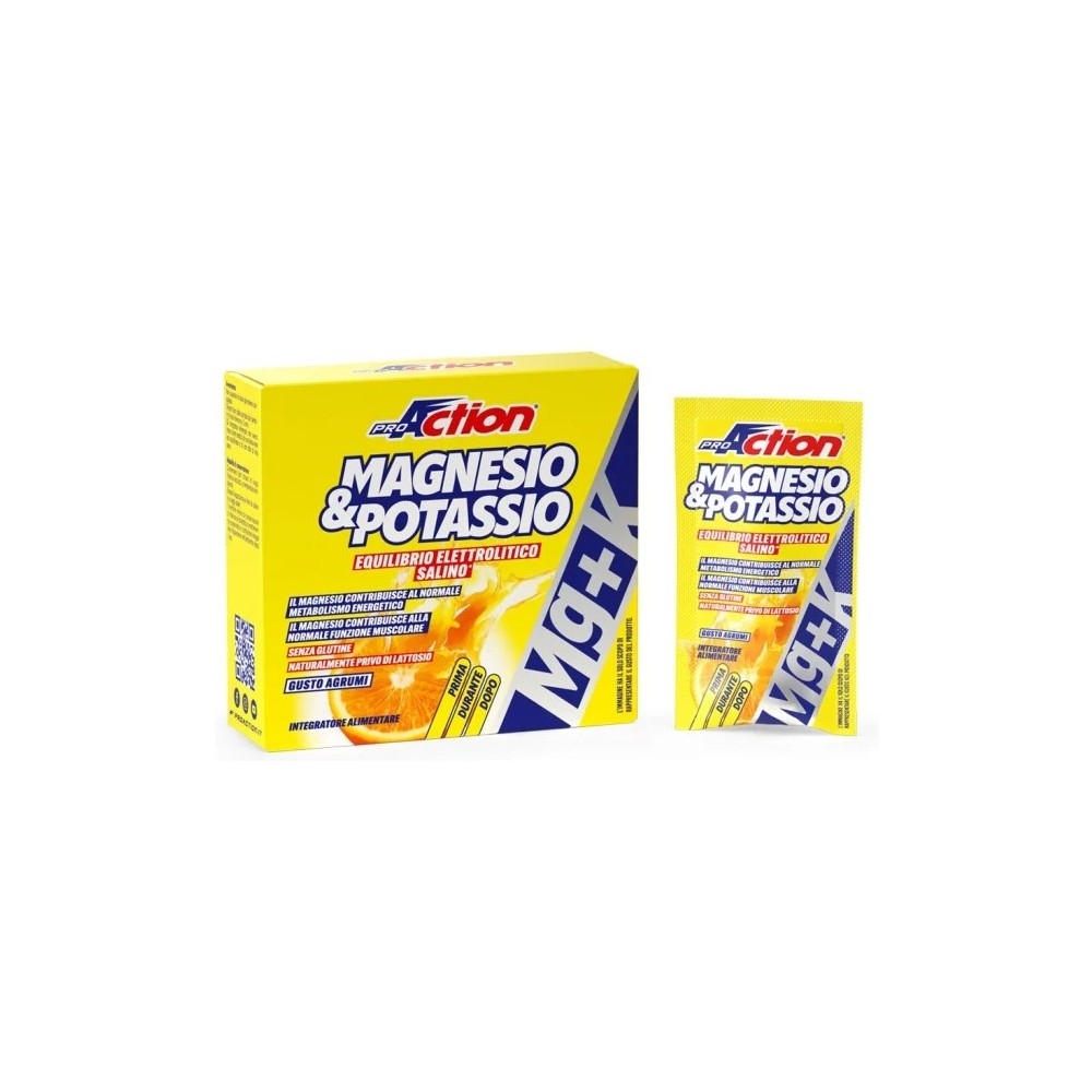 Magnesio e Potassio è un pratico prodotto, in comode bustine, studiato per l’equilibrio elettrolitico salino, ovvero per reintegrare liquidi e sali persi durante e dopo lo sforzo fisico, prevenendo, tra l’altro, l’insorgenza dei crampi muscolari. Si consiglia l’utilizzo di Mg+K almeno da un’ora dopo l’inizio dell’attività fisica, quando la necessità di reidratazione salina diventa indispensabile per l’equilibrio fisico. Magnesio e Potassio è un pratico prodotto adatto a tutti perchè senza glutine e senza lattosio.