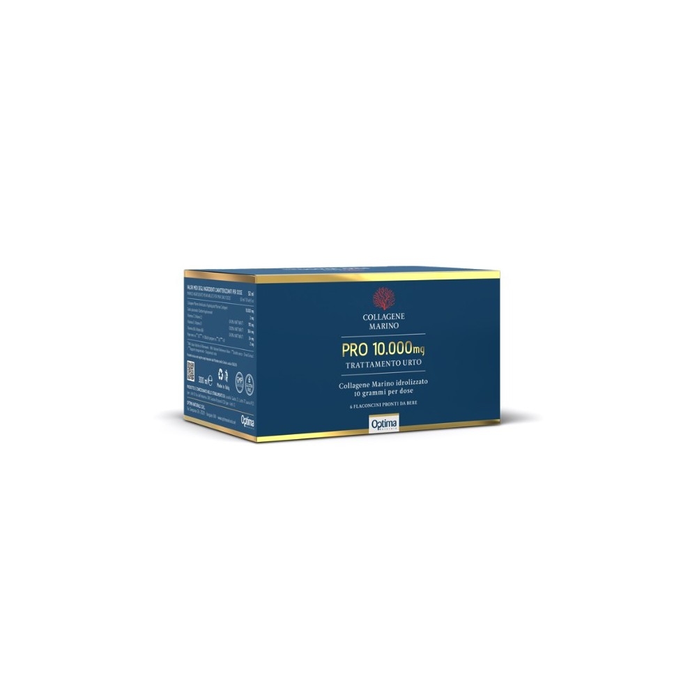 Dalla ricerca Optima Naturals nasce Collagene Marino Pro 10000 mg Trattamento Urto, un integratore a base di collagene marino idrolizzato ad alto dosaggio, acido ialuronico e vitamine B6 , C ed E. Una formula complessa e sinergica, adatta ad un trattamento intensivo, poichè apporta 10 grammi di collagene idrolizzato per dose, componente chiave che favorisce la luminosità della pelle e riduce l'aspetto delle rughe.