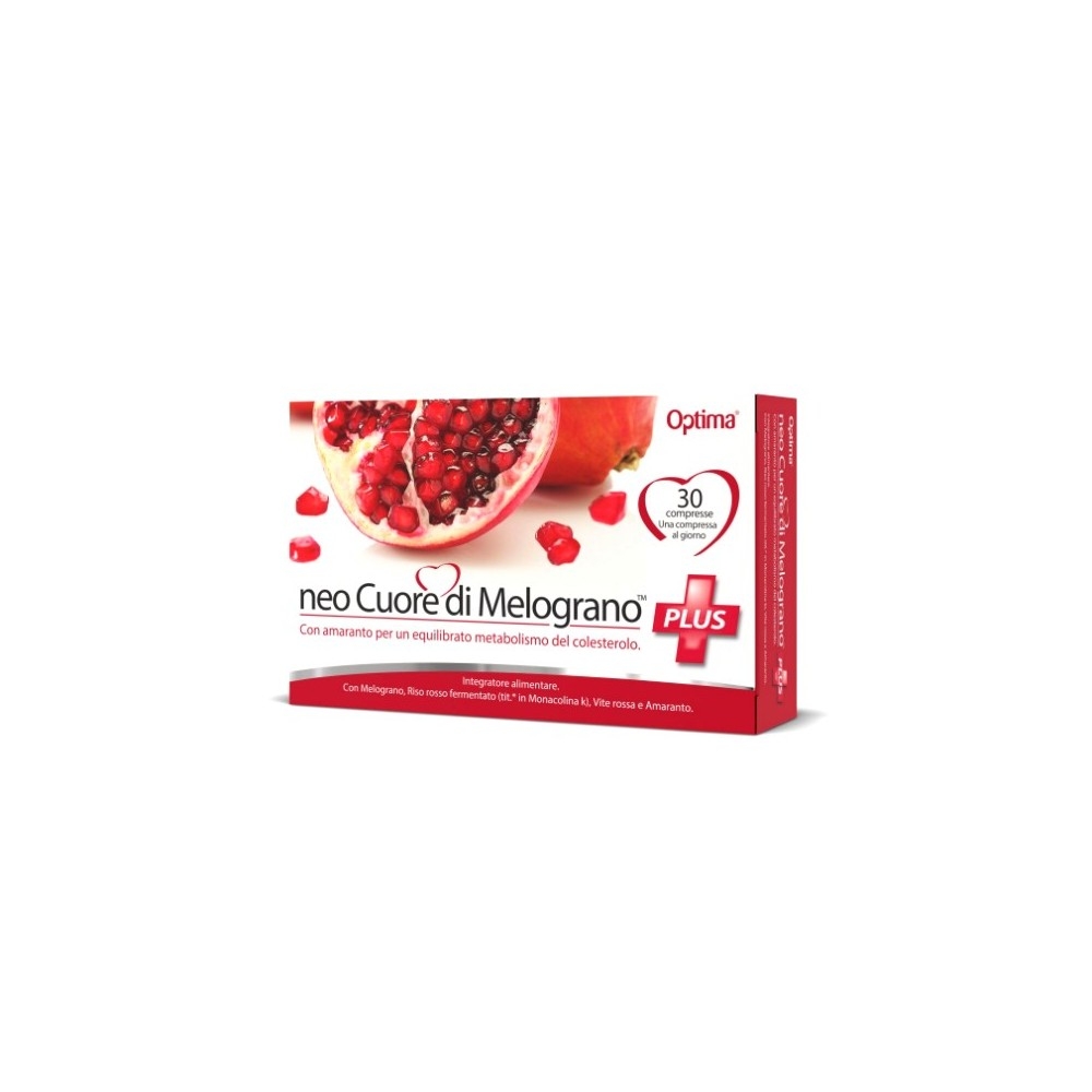 Neocuore Di Melograno Plus Integratore colesterolo 30 compresse è un integratore alimentare in compresse a base di Riso rosso fermentato titolato in Monacolina K, Amaranto, Melograno estratto secco e Melograno succo polvere. L'Amaranto favorisce il normale metabolismo del colesterolo.